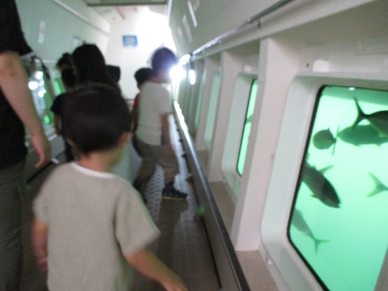 この船は、階段をおりて水面より下にいくと、ガラスの窓から外の海が見えるようになってるんです。